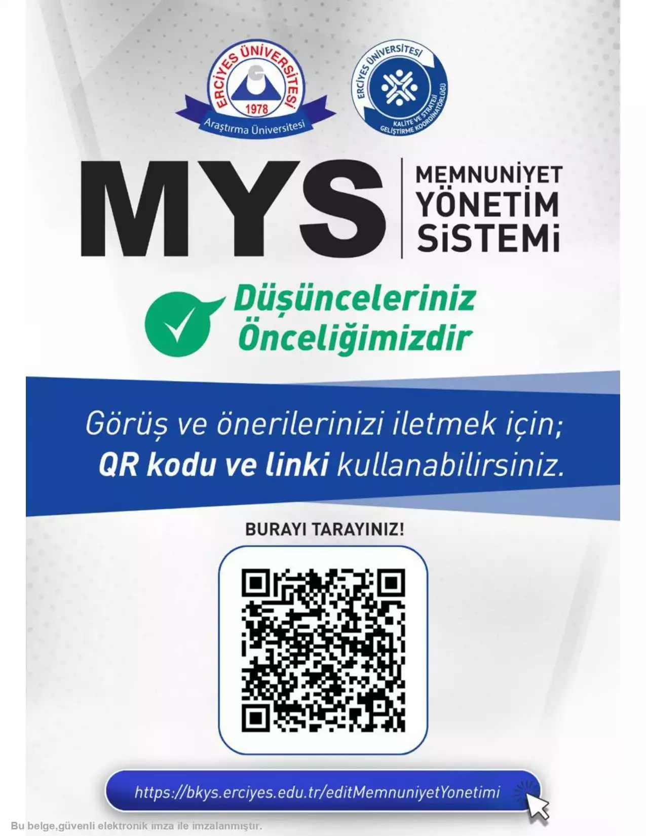 Memnuniyet Yönetim Sistemi (MYS) için tıklayınız..